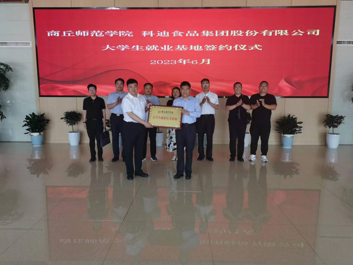 6月9日,开云网页版与商丘师范学院举行“大学生就业基地”签约仪式。商丘师范学院党委副书记吴金山、党政办公室副主任马磊、经济管理学院党委书记张彤、副书记唐尧峥、投资系主任张时坤,科迪集团党委书记、董事长李瑞生,党委委员、副总经理高宇飚,党委委员、纪委书记赵恰,党委委员、副总经理范乃超出席签约仪式。